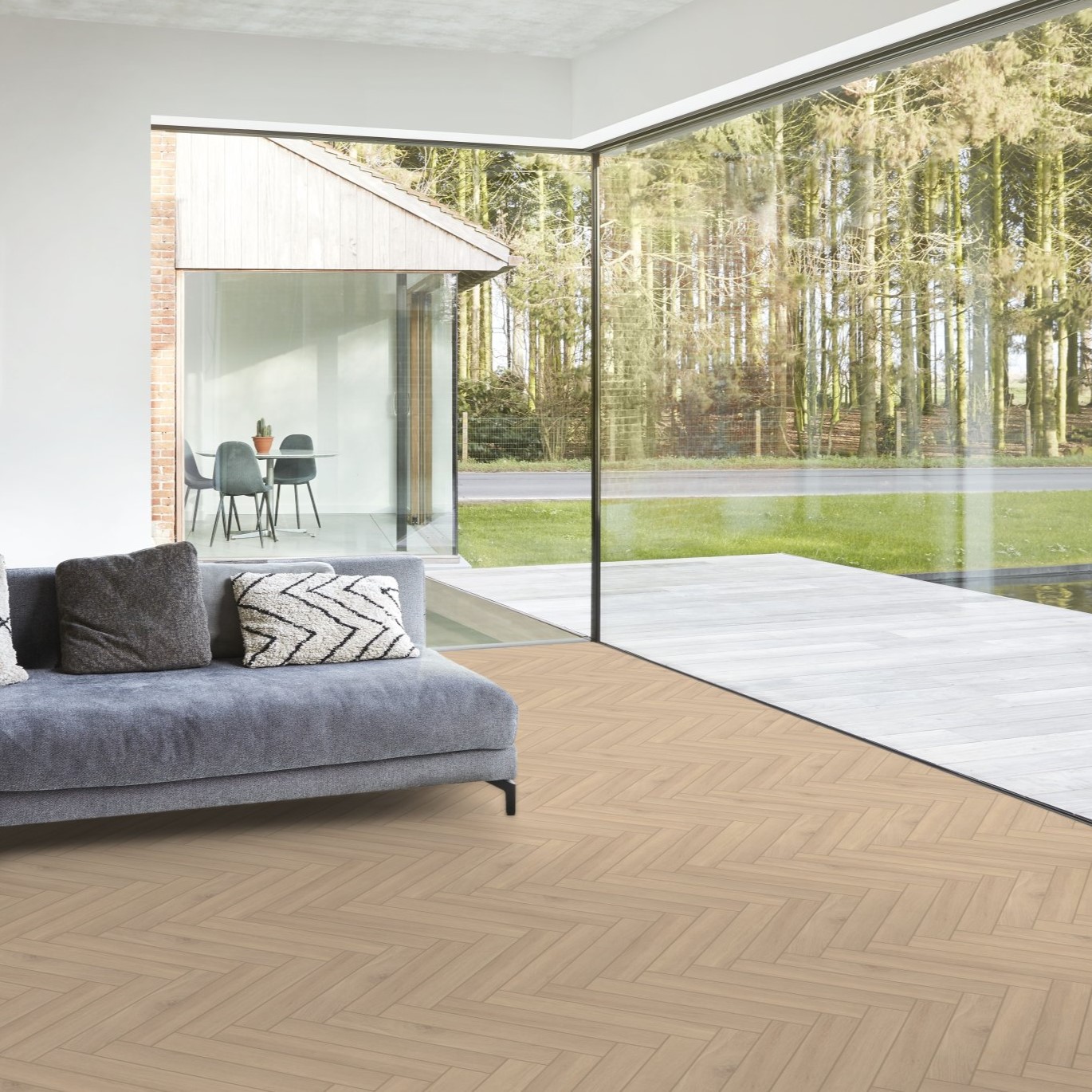 Berry Alloc Chateau+ Bloom Sand Natural 62002713 Panele Podłogowe AC5/8mm Jodełka Klasyczna B