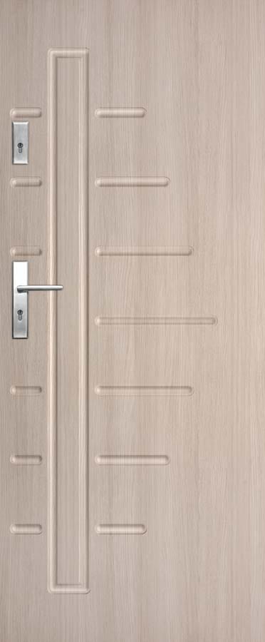 W STANDARDZIE » rama z płyty MDF wzmocniona dwoma płaskownikami stalowymi » wypełnienie płyta wiórowa otworowa » płyta zewnętrzna HDF płaska bądź z frezem dekoracyjnym. » 3 zawiasy wkręcane koloru srebrnego » krawędź prosta rys. 1 lub krawędź R 2,5 mm (w laminatach CPL) rys. 2 SKRZYDŁO PRZYLGOWE ENTER: » zamek zasuwkowy dolny na wkładkę patentową » zamek zasuwkowy górny na wkładkę patentową » Drzwi dostępne w wymiarze inwestycyjnym „90E” ( światło przejścia w ościeżnicy ze skrzydłem otwartym pod kątem 90 stopni=900 mm) ZASTOSOWANIE Drzwi ENTER i SOLID mają zastosowanie jako drzwi wewnętrzne wejściowe w budownictwie mieszkaniowym i użyteczności publicznej. KONSTRUKCJA Rama skrzydła wykonana z płyty MDF dodatkowo wzmocniona dwoma płaskownikami stalowymi. Wypełnienie – płyta wiórowa otworowa. Drzwi mają podwyższoną izolacyjność akustyczną (Rw=32dB), pod warunkiem zastosowania progów lub uszczelki opadającej.