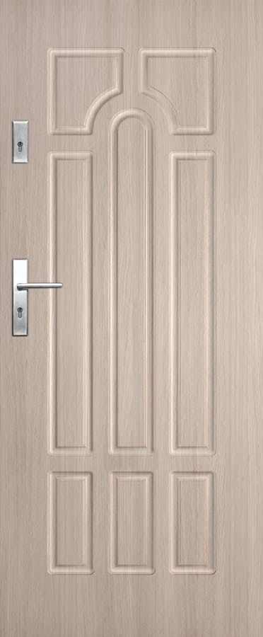 W STANDARDZIE » rama z płyty MDF wzmocniona dwoma płaskownikami stalowymi » wypełnienie płyta wiórowa otworowa » płyta zewnętrzna HDF płaska bądź z frezem dekoracyjnym. » 3 zawiasy wkręcane koloru srebrnego » krawędź prosta rys. 1 lub krawędź R 2,5 mm (w laminatach CPL) rys. 2 SKRZYDŁO PRZYLGOWE ENTER: » zamek zasuwkowy dolny na wkładkę patentową » zamek zasuwkowy górny na wkładkę patentową » Drzwi dostępne w wymiarze inwestycyjnym „90E” ( światło przejścia w ościeżnicy ze skrzydłem otwartym pod kątem 90 stopni=900 mm) ZASTOSOWANIE Drzwi ENTER i SOLID mają zastosowanie jako drzwi wewnętrzne wejściowe w budownictwie mieszkaniowym i użyteczności publicznej. KONSTRUKCJA Rama skrzydła wykonana z płyty MDF dodatkowo wzmocniona dwoma płaskownikami stalowymi. Wypełnienie – płyta wiórowa otworowa. Drzwi mają podwyższoną izolacyjność akustyczną (Rw=32dB), pod warunkiem zastosowania progów lub uszczelki opadającej.