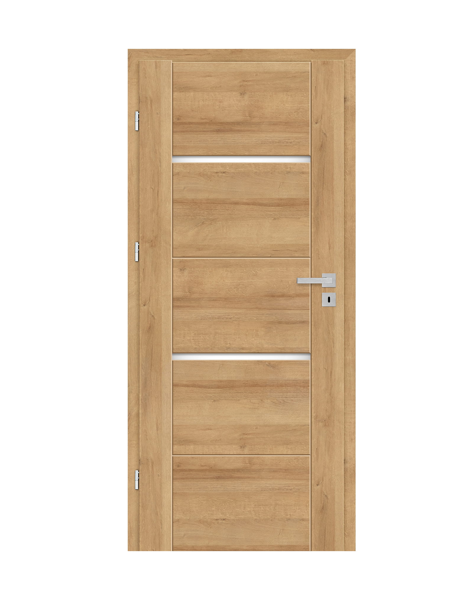 KONSTRUKCJA • skrzydło przylgowe lub bezprzylgowe wykonane w technologii ramiakowej STILE • ramiaki pionowe z płyty MDF pokryte okleiną GREKO i CPL z powłoką AntiFinger NOWOŚĆ oraz ramiaki pionowe z warstwowo klejonego drewna obłożone cienkimi płytami HDF pokryte okleiną PREMIUM lub CPL bez powłoki AntiFinger • bardzo szeroka poprzeczka gr. 35 mm • opcjonalnie za dopłatą panele górne poszerzające ościeżnicę – str. 134 OKUCIA • trzy srebrne zawiasy 2-czopowe z regulacją w płaszczyźnie poziomej w skrzydle przylgowym • trzy zawiasy ukryte w skrzydle bezprzylgowym w kolorze srebrnym (opcjonalnie za dopłatą w kolorze czarnym); zawiasy dostarczane oraz wyceniane są z ościeżnicą • zamek zasuwkowy w skrzydle przylgowym i magnetyczny w skrzydle bezprzylgowym na klucz, wkładkę patentową, oszczędnościowy lub z blokadą w kolorze srebrnym; opcjonalnie za dopłatą zamek magnetyczny w kolorze czarnym