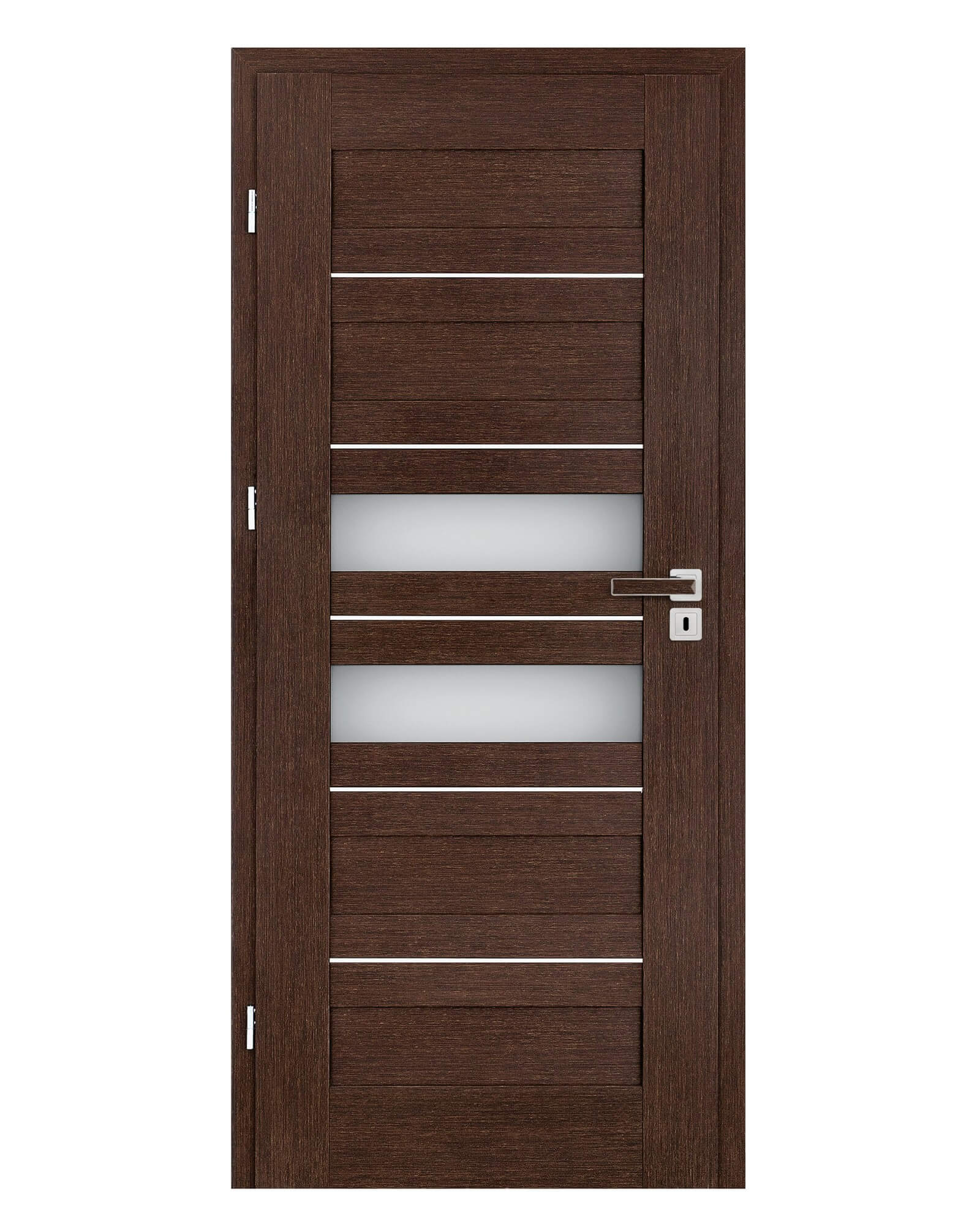 KONSTRUKCJA • skrzydło przylgowe lub bezprzylgowe wykonane w technologii ramiakowej STILE • ramiaki pionowe z płyty MDF pokryte okleiną GREKO i CPL z powłoką AntiFinger NOWOŚĆ oraz ramiaki pionowe z warstwowo klejonego drewna obłożone cienkimi płytami HDF pokryte okleiną PREMIUM lub CPL bez powłoki AntiFinger • płyciny z płyty HDF o grubości 4mm pokryte okleiną GREKO, CPL lub PREMIUM • wstawki z aluminium szczotkowanego • opcjonalnie za dopłatą panele górne poszerzające ościeżnicę – str. 134 OKUCIA • trzy srebrne zawiasy 2-czopowe z regulacją w płaszczyźnie poziomej w skrzydle przylgowym • trzy zawiasy ukryte w skrzydle bezprzylgowym w kolorze srebrnym (opcjonalnie za dopłatą w kolorze czarnym); zawiasy dostarczane oraz wyceniane są z ościeżnicą • zamek zasuwkowy w skrzydle przylgowym i magnetyczny w skrzydle bezprzylgowym na klucz, wkładkę patentową, oszczędnościowy lub z blokadą w kolorze srebrnym; opcjonalnie za dopłatą zamek magnetyczny w kolorze czarnym