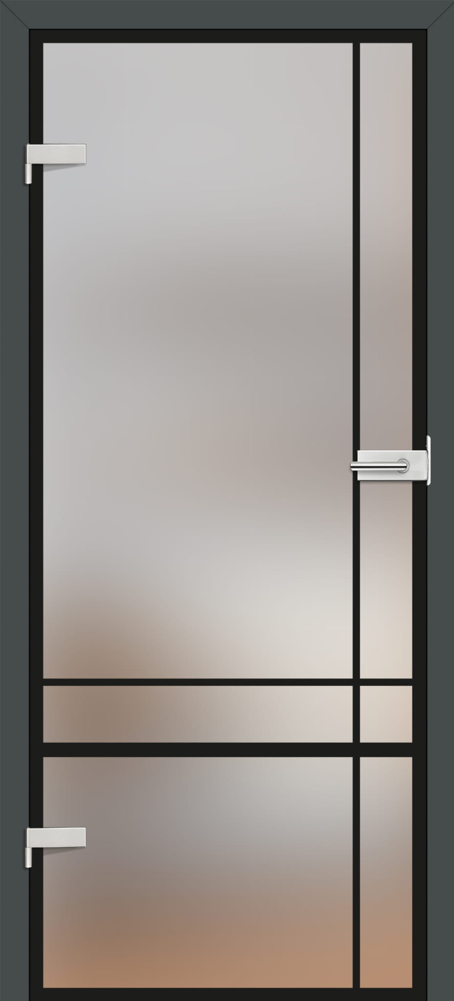 KONSTRUKCJA • szkło hartowane 8 mm, szkło 8 mm barwione w masie (GRAF 26) • możliwość zmiany strony szklenia na REWERS (AWERS szklenie standardowe) • szkło mleczne lub bezbarwne z wzorami malowanymi na czarno lub biało • szerokość (grubość) linii w modelu GRAF 1, 6, 17, 35, 36, 38 wynosi 30 mm • opcjonalnie za dopłatą panele górne poszerzające ościeżnicę – str. 134 OŚCIEŻNICA STAŁA I REGULOWANA • ceny ościeżnic regulowanych i stałych do skrzydeł przylgowych str. 161-163 • brak możliwości zastosowania elektrozaczepu • w ościeżnicach do tafli szklanych stosowany jest zawias z trzpieniem 10 mm • w ościeżnicy regulowanej i stałej możliwość zmiany blachy zaczepowej (za dopłatą) na kolor czarny malowany proszkowo • DO SKRZYDEŁ SZKLANYCH GRAF DOSTĘPNE SĄ TYLKO OŚCIEŻNICE PRZYLGOWE WE WSZYSTKICH DOSTĘPNYCH DEKORACH, OŚCIEŻNICE STALOWE ORAZ OŚCIEŻNICA MALOWANA BIAŁY TYTANOWY UV
