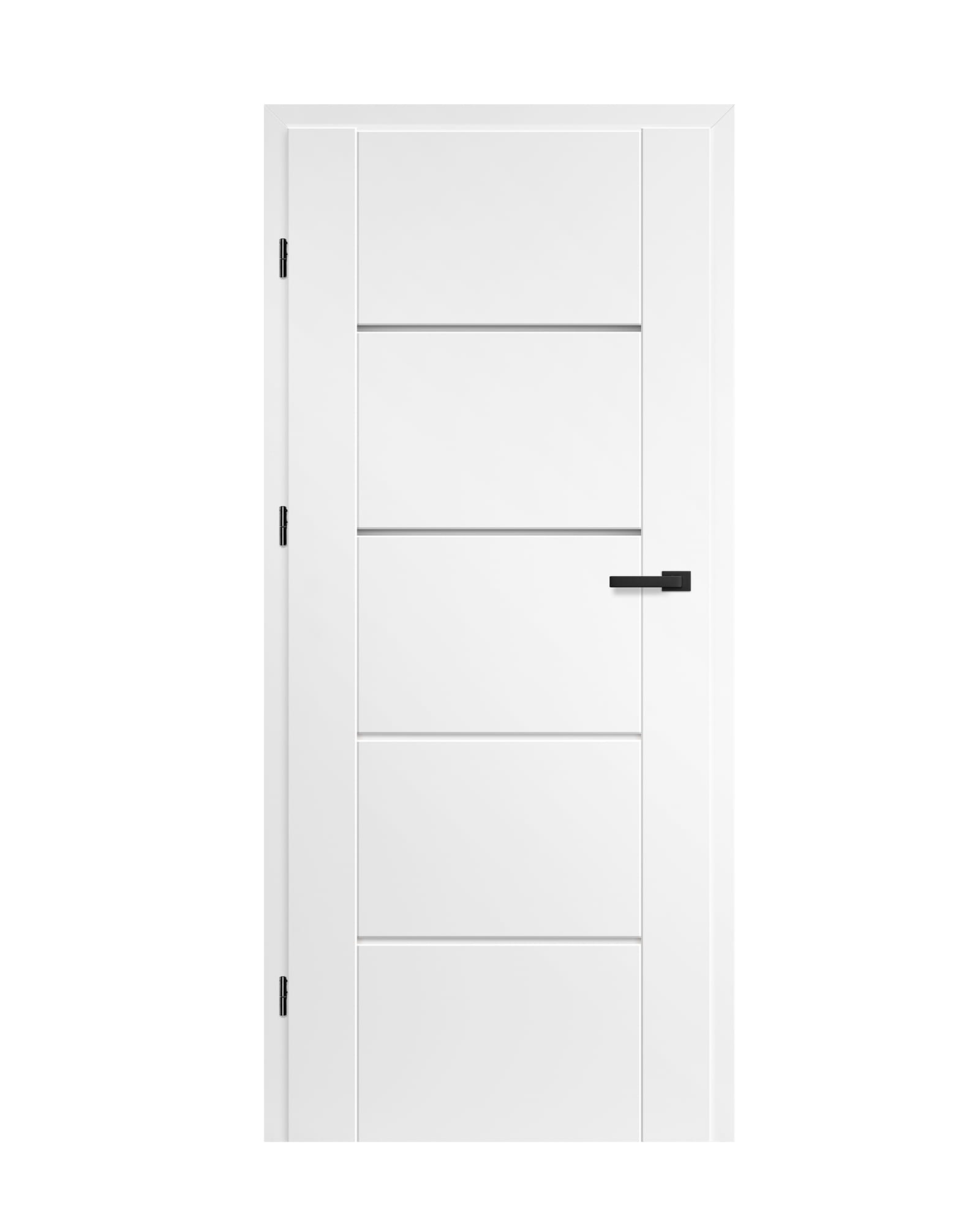 KONSTRUKCJA • skrzydło przylgowe lub bezprzylgowe wykonane w technologii ramiakowej STILE • ramiaki pionowe z płyty MDF pokryte okleiną CPL z powłoką AntiFinger NOWOŚĆ oraz ramiaki pionowe z warstwowo klejonego drewna obłożone cienkimi płytami HDF pokryte okleiną PREMIUM lub CPL bez powłoki AntiFinger • płyciny z płyty HDF o grubości 4mm pokryte okleiną CPL lub PREMIUM • bardzo szeroka poprzeczka gr. 35 mm • opcjonalnie za dopłatą panele górne poszerzające ościeżnicę – str. 134 OKUCIA • trzy srebrne zawiasy 2-czopowe z regulacją w płaszczyźnie poziomej w skrzydle przylgowym • trzy zawiasy ukryte w skrzydle bezprzylgowym w kolorze srebrnym (opcjonalnie za dopłatą w kolorze czarnym); zawiasy dostarczane oraz wyceniane są z ościeżnicą • zamek zasuwkowy w skrzydle przylgowym i magnetyczny w skrzydle bezprzylgowym na klucz, wkładkę patentową, oszczędnościowy lub z blokadą w kolorze srebrnym; opcjonalnie za dopłatą zamek magnetyczny w kolorze czarnym