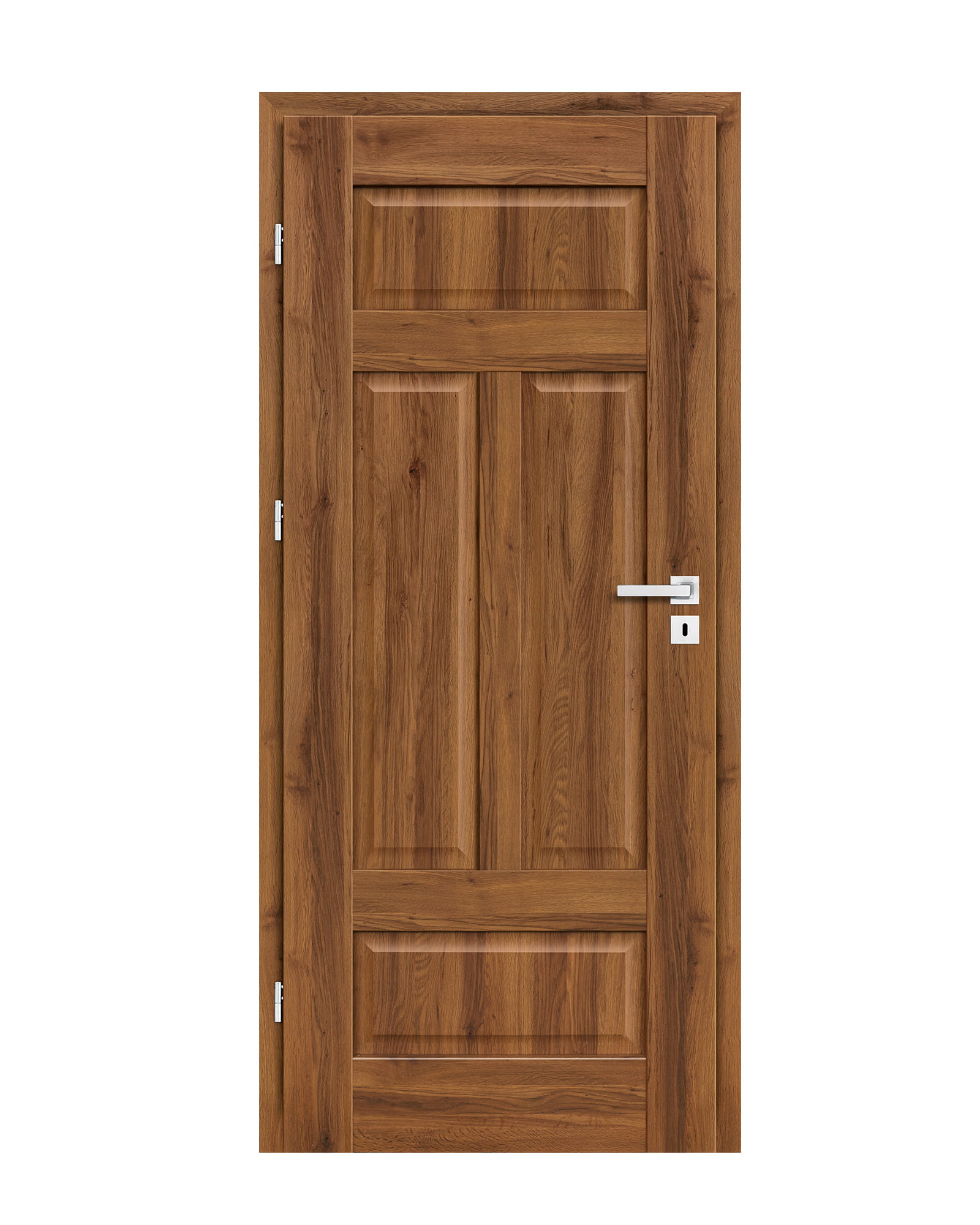 KONSTRUKCJA • skrzydło przylgowe lub bezprzylgowe wykonane w technologii ramiakowej STILE • ramiaki pionowe z płyty MDF pokryte okleiną GREKO i CPL z powłoką AntiFinger NOWOŚĆ oraz ramiaki pionowe z warstwowo klejonego drewna obłożone cienkimi płytami HDF pokryte okleiną PREMIUM lub CPL bez powłoki AntiFinger • panele z płyty HDF o grubości 16 mm fazowane i pokryte okleiną w wybranych dekorach GREKO, CPL lub PREMIUM • opcjonalnie za dopłatą panele górne poszerzające ościeżnicę – str. 134 OKUCIA • trzy srebrne zawiasy 2-czopowe z regulacją w płaszczyźnie poziomej w skrzydle przylgowym • trzy zawiasy ukryte w skrzydle bezprzylgowym w kolorze srebrnym (opcjonalnie za dopłatą w kolorze czarnym); zawiasy dostarczane oraz wyceniane są z ościeżnicą • zamek zasuwkowy w skrzydle przylgowym i magnetyczny w skrzydle bezprzylgowym na klucz, wkładkę patentową, oszczędnościowy lub z blokadą w kolorze srebrnym; opcjonalnie za dopłatą zamek magnetyczny w kolorze czarnym