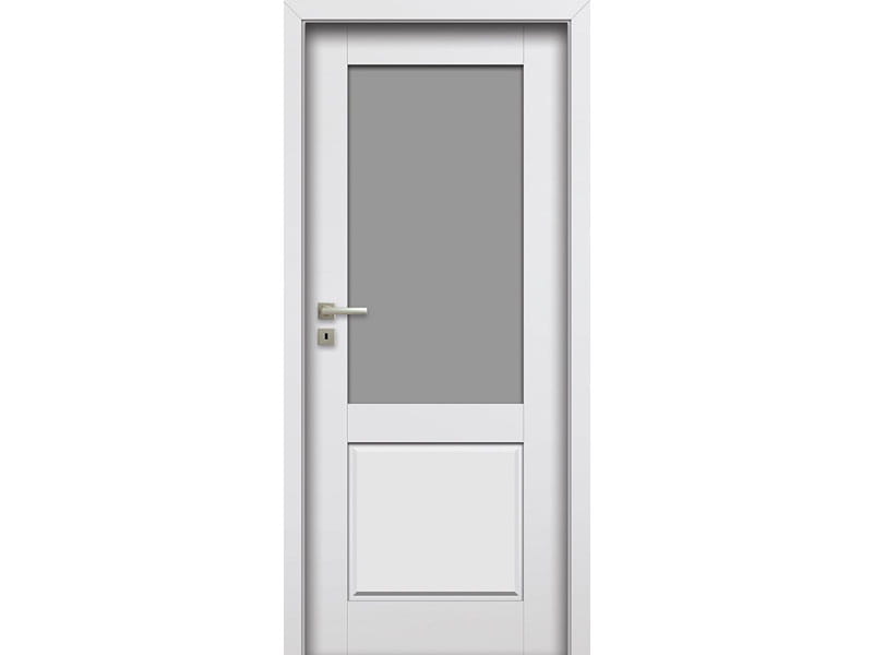 STANDARDOWE wzór W01, W03 - szyba hartowana biały mat o grubości 4 mm wzór W00, W02 - płycina przestrzenna o grubości 16 mm zamek jednopunktowy wpuszczany biały ocynk, rozstaw 72 mm (system przylgowy), w kolorze UNI MAT PLUS czarny 644 zamek jednopunktowy wpuszczany w kolorze czarnym, rozstaw 72 mm (system przylgowy) lub magnetyczny w kolorze nikiel satyna (system bezprzylgowy) wpuszczany na klucz (rozstaw 90 mm), na wkładkę (rozstaw 85 mm) lub do blokady łazienkowej (rozstaw 90 mm) w kolorze UNI MAT PLUS czarny 644 zamek magnetyczny w kolorze czarnym (system bezprzylgowy) wpuszczany na klucz (rozstaw 90 mm), na wkładkę (rozstaw 85 mm) lub do blokady łazienkowej (rozstaw 90 mm) zawiasy srebrne: typ B – do ościeżnicy system DIN, typ D – do ościeżnicy MDF, typ M – do ościeżnicy metalowej lub kryty DUO nikiel satyna („60”-„90” – 3 szt.), w kolorze UNI MAT PLUS czarny 644 zawiasy kryte DUO w kolorze czarnym brak możliwości zastosowania samozamykacza brak możliwości zastos