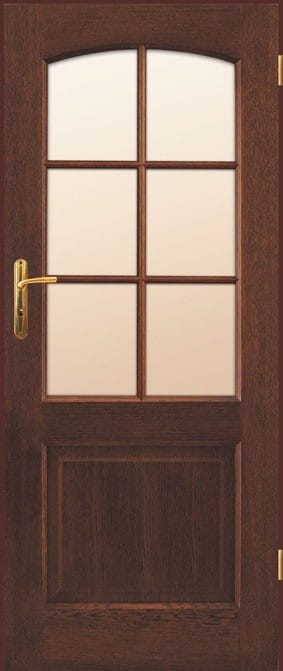 STANDARDOWE szkło biały mat lub przezierne o grubości 4 mm zamek jednopunktowy, rozstaw 72 mm wpuszczany, na klucz, na wkładkę lub do blokady łazienkowej zawiasy: typ K – do ościeżnicy system DIN, typ C – do ościeżnicy drewnianej, typ M – skrzydło do ościeżnicy metalowej („60”-„80” – 2 szt., „90” – 3 szt.)