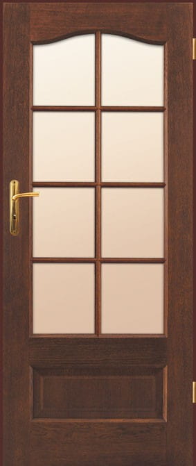 STANDARDOWE szkło biały mat lub przezierne o grubości 4 mm zamek jednopunktowy, rozstaw 72 mm wpuszczany, na klucz, na wkładkę lub do blokady łazienkowej zawiasy: typ K – do ościeżnicy system DIN, typ C – do ościeżnicy drewnianej, typ M – skrzydło do ościeżnicy metalowej („60”-„80” – 2 szt., „90” – 3 szt.)