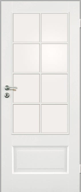 STANDARDOWE szkło biały mat lub przezierne o grubości 4 mm szprosy drewniane zamek jednopunktowy, rozstaw 72 mm (sys. przylgowy) lub magnetyczny (sys. bezprzylgowy) wpuszczany, na klucz (rozstaw 90 mm), na wkładkę (rozstaw 85 mm) lub do blokady łazienkowej (rozstaw 90 mm) zawiasy: typ K – do ościeżnicy system DIN, typ C – do ościeżnicy drewnianej, typ M – do ościeżnicy metalowej lub kryty DUO nikiel satyna („60”-„80” – 2 szt., „90” – 3 szt.) brak możliwości zastosowania samozamykacza kolekcja BLACK: standard blacha czołowa zamka magnetycznego oraz zawiasy DUO w kolorze czarnym