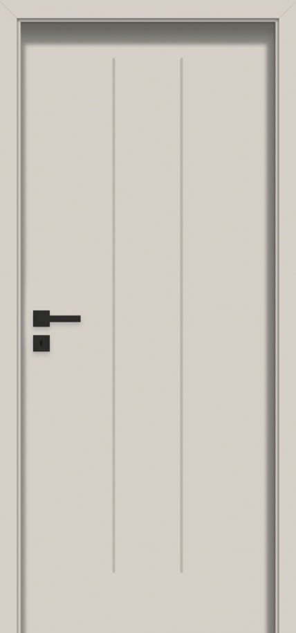 STANDARDOWE zamek jednopunktowy, rozstaw 72 mm (sys. przylgowy) lub magnetyczny (sys. bezprzylgowy) wpuszczany, na klucz (rozstaw 90 mm), na wkładkę (rozstaw 85 mm) lub do blokady łazienkowej (rozstaw 90 mm) zawiasy: typ K srebrny – do ościeżnicy system DIN, typ C srebrny – do ościeżnicy drewnianej, typ M – do ościeżnicy metalowej lub kryty DUO nikiel satyna („60”-„80” – 2 szt., „90” – 3 szt.) w przypadku skrzydła z samozamykaczem oraz ościeżnicą DIN lub metalową należy zastosować zawiasy typ T w ilości „60”-„80” – 3 szt., „90”-„110” – 4 szt. (wymiana standardowych zawiasów na zawias typ T za dopłatą) kolekcja BLACK: standard blacha czołowa zamka magnetycznego oraz zawiasy DUO w kolorze czarnym