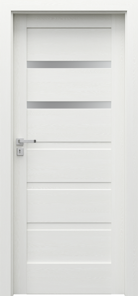KONSTRUKCJA SKRZYDŁA Skrzydła w zależności od wzoru składają się z ramiaków poziomych i płycin oraz szyb matowych wykonanych ze szkła hartowanego. Szyby matowe o grubości 4 mm. W skrzydłach w Białej okleinie istnieje możliwość wyboru listew dekoracyjnych w okleinie Portaperfect lub w okleinie aluminium szczotkowane (opcja za dopłatą). AKCESORIA W CENIE SKRZYDŁA • Zamek dostępny w wariantach: na klucz zwykły, z blokadą łazienkową, dostosowany pod wkładkę patentową lub bez nawiertu pod klucz • Drzwi przylgowe: trzy zawiasy czopowe standard lub PRIME (opcja za dopłatą); bezprzylgowe: dwa zawiasy 3D • Szyba hartowana matowa • Przygotowanie do skrótu, maksymalnie 30 mm • Pochwyt okrągły (do drzwi przesuwnych) OŚCIEŻNICE Rekomendowane ościeżnice przylgowe: • PORTA SYSTEM str. 200 • MINIMAX str. 198 • STALOWE str. 212-217 Rekomendowane ościeżnice bezprzylgowe: • PORTA SYSTEM ELEGANCE str. 202 • LEVEL str. 206
