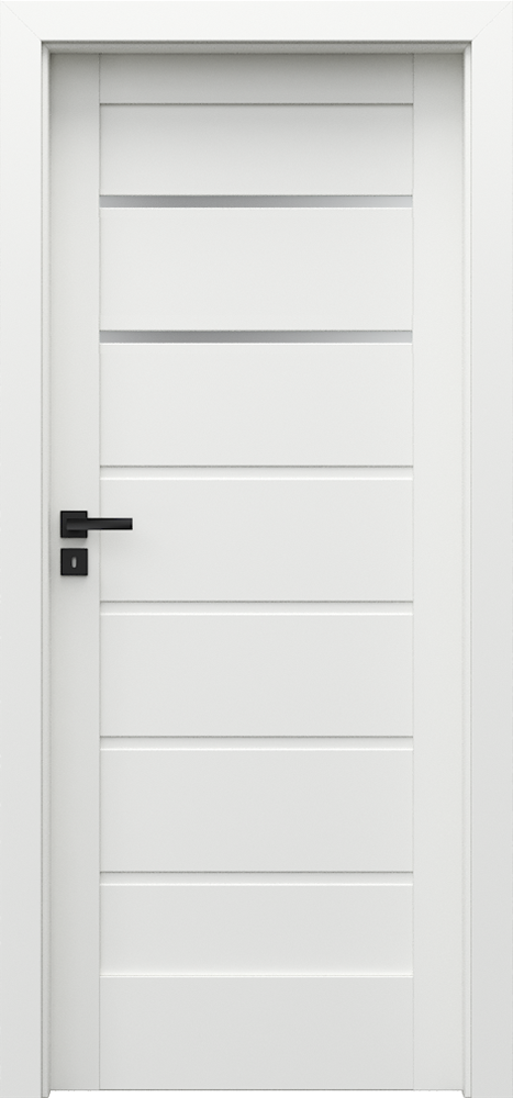 KONSTRUKCJA SKRZYDŁA Skrzydła w zależności od wzoru składają się z ramiaków poziomych i płycin oraz szyb matowych wykonanych ze szkła hartowanego. Szyby matowe o grubości 4 mm. W skrzydłach w Białej okleinie istnieje możliwość wyboru listew dekoracyjnych w okleinie Portaperfect lub w okleinie aluminium szczotkowane (opcja za dopłatą). AKCESORIA W CENIE SKRZYDŁA • Zamek dostępny w wariantach: na klucz zwykły, z blokadą łazienkową, dostosowany pod wkładkę patentową lub bez nawiertu pod klucz • Drzwi przylgowe: trzy zawiasy czopowe standard lub PRIME (opcja za dopłatą); bezprzylgowe: dwa zawiasy 3D • Szyba hartowana matowa • Przygotowanie do skrótu, maksymalnie 30 mm • Pochwyt okrągły (do drzwi przesuwnych) OŚCIEŻNICE Rekomendowane ościeżnice przylgowe: • PORTA SYSTEM str. 200 • MINIMAX str. 198 • STALOWE str. 212-217 Rekomendowane ościeżnice bezprzylgowe: • PORTA SYSTEM ELEGANCE str. 202 • LEVEL str. 206