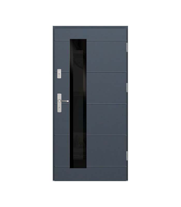 Drzwi zewnętrzne z kolekcji Glass Loft zachwycają taflami szkła aplikowanego bezpośrednio na skrzydło drzwiowe. Pod szklaną, czarną aplikacją Lacobel znajduje się pakiet szybowy umożliwiający przepuszczanie światła. To piękne, czarne wzornictwo, dzięki któremu zobaczysz więcej. Lacobel to delikatnie przezierna, barwiona na czarno tafla szkła o wysokim połysku, aplikowana bezpośrednio na drzwi.