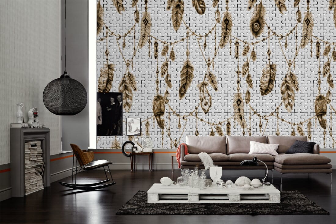 Fototapeta Atelier 47 DD117599 FeatherPuzzle2 ::: Nośnik: 200g flizelina z połyskiem ::: Wymiary: 5,00 m x 2,70 m ::: Producent: AS Creation, kolekcja: Atelier 47